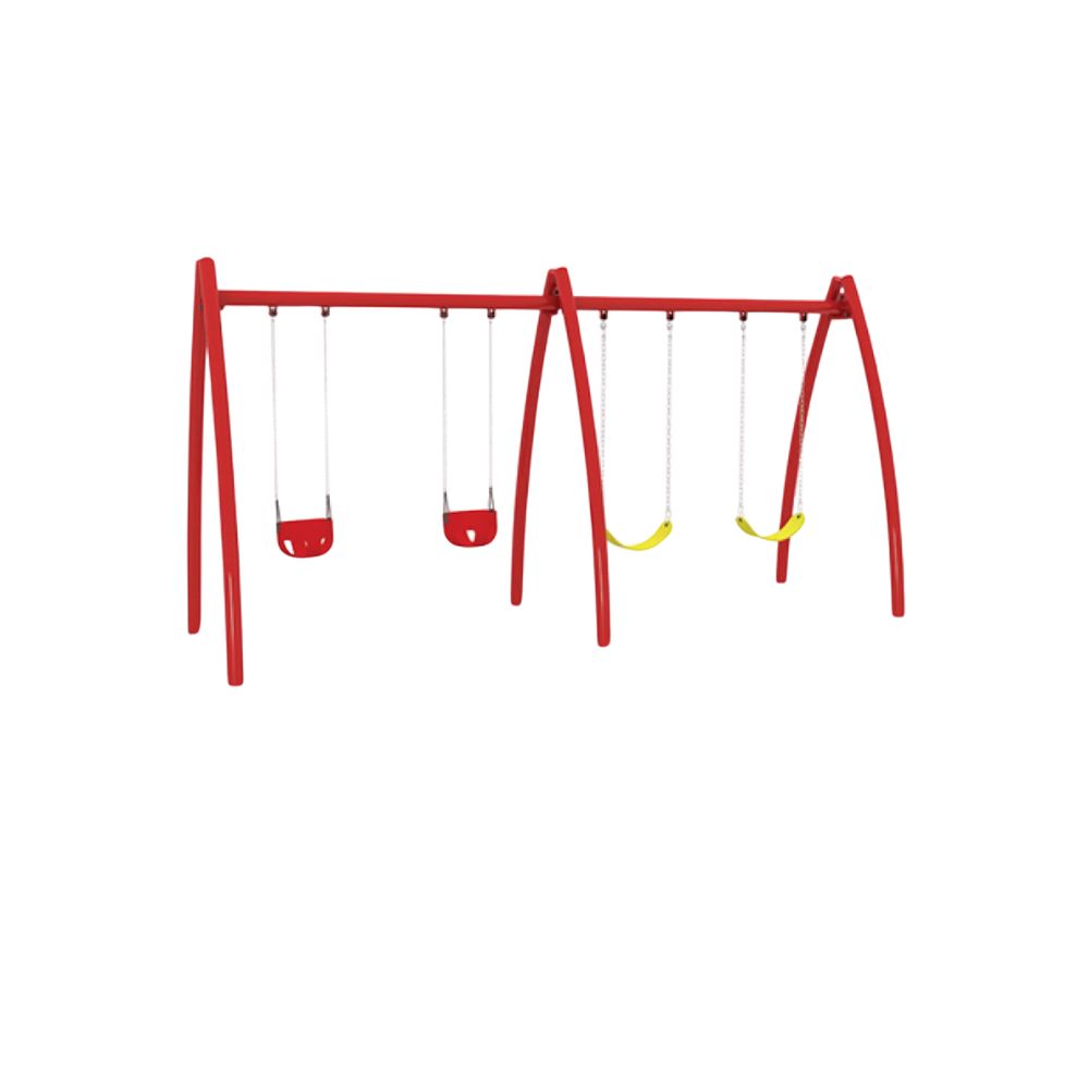 Columpio 4 asientos; dos corrales y dos de poliuretano, no se oxidan ni se pudren, fabricados con pinturas libres de plomo