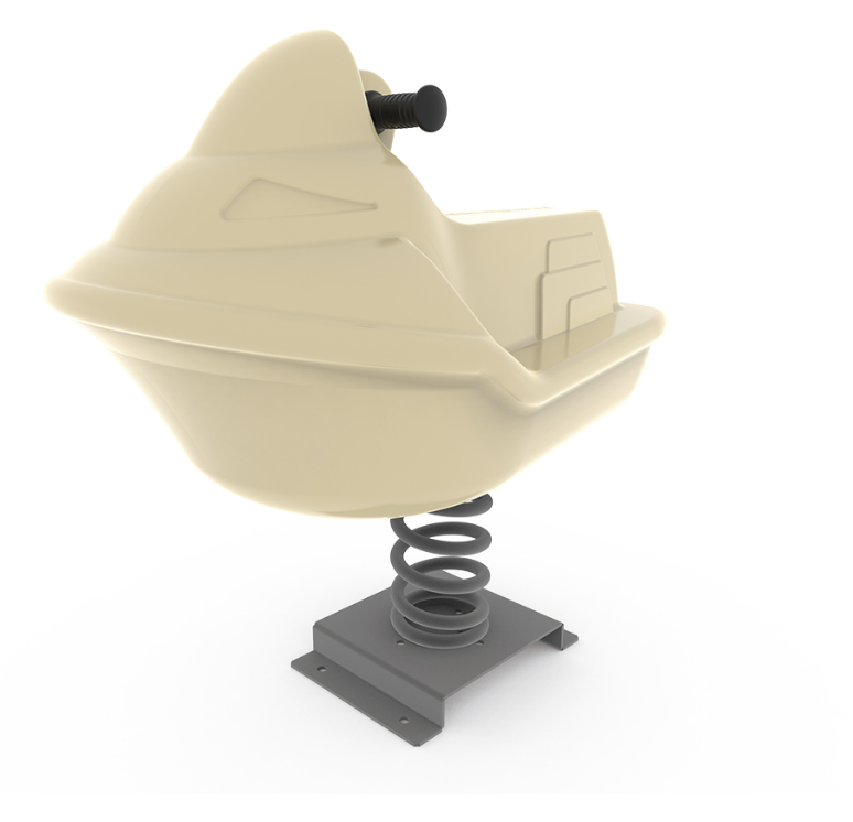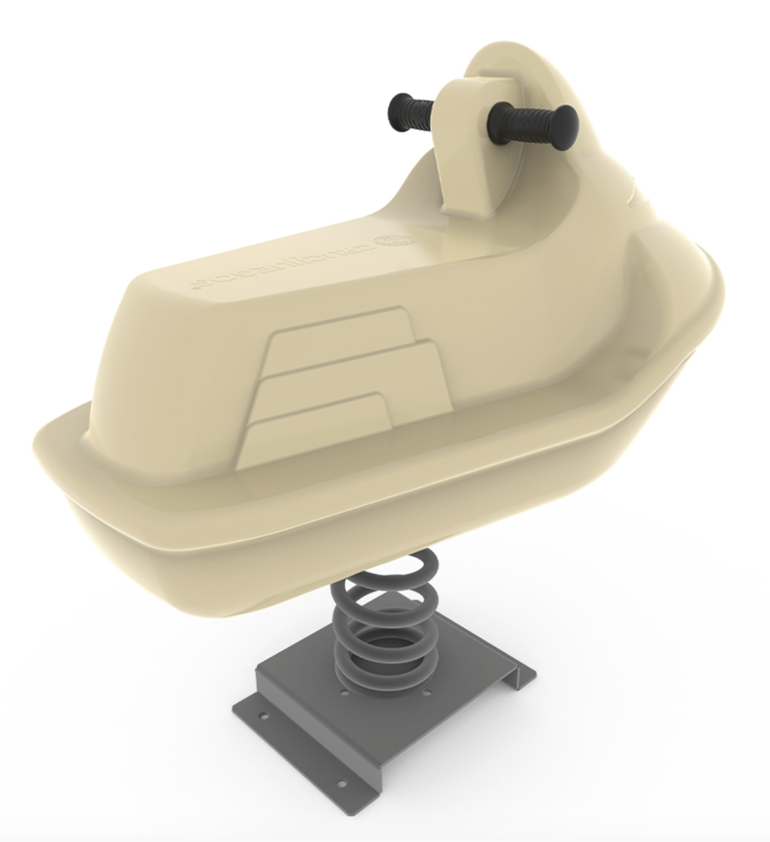 Juego con resorte para espacios públicos fabricado en plástico rotomoldeado de media densidad, preparado para abrocar.