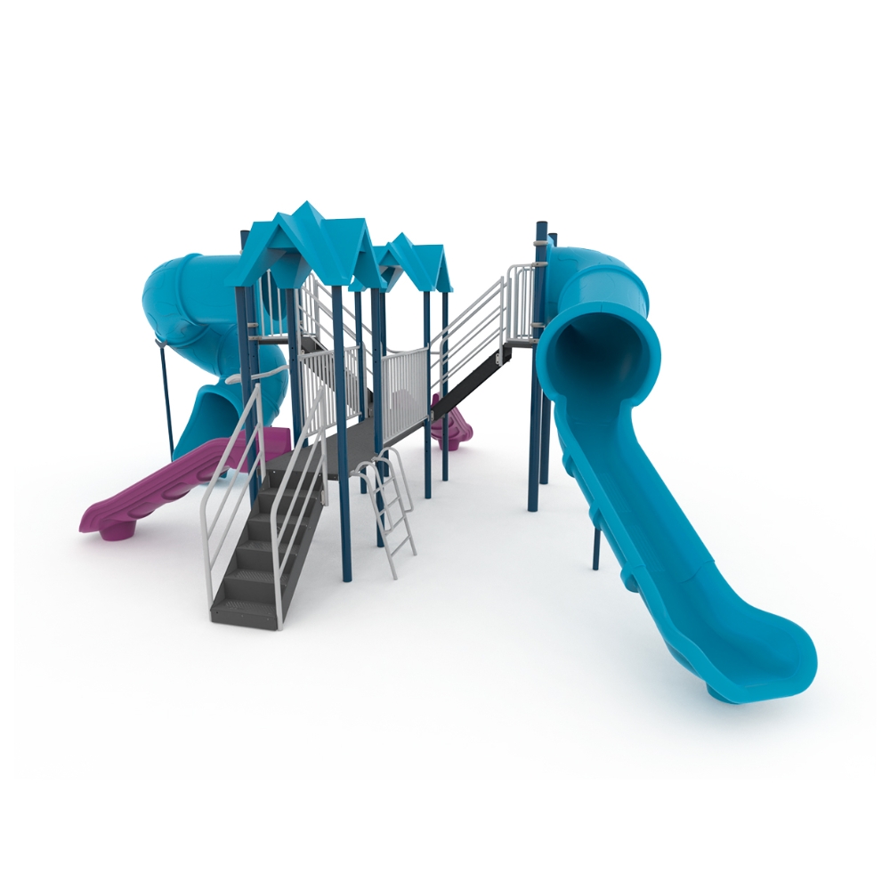 Imponente mangrullo con tres metros de altura, con dos torres a las cuales se puede acceder por el divertido trepador inclinado o por la escalera de ingreso, para descender pueden deslizarse por los toboganes rectos abiertos o, más arriba, por el tobogán mixto recto o el tobogán tubo rulo.