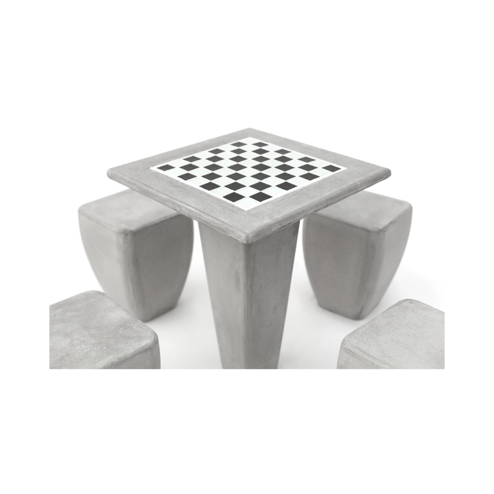 El conjunto Timbal es uno de los productos insignia de la nueva línea de diseño de Durban. Tiene una exquisita estética lograda por la perfecta sencillez de sus líneas. Es un conjunto de mesa y cuatro bancos Timbal, con la peculiaridad de tener incorporado en la mesa un tablero de ajedrez. El tablero está compuesto de finos mosaicos que embellecen el conjunto y le otorgan una fina terminación.