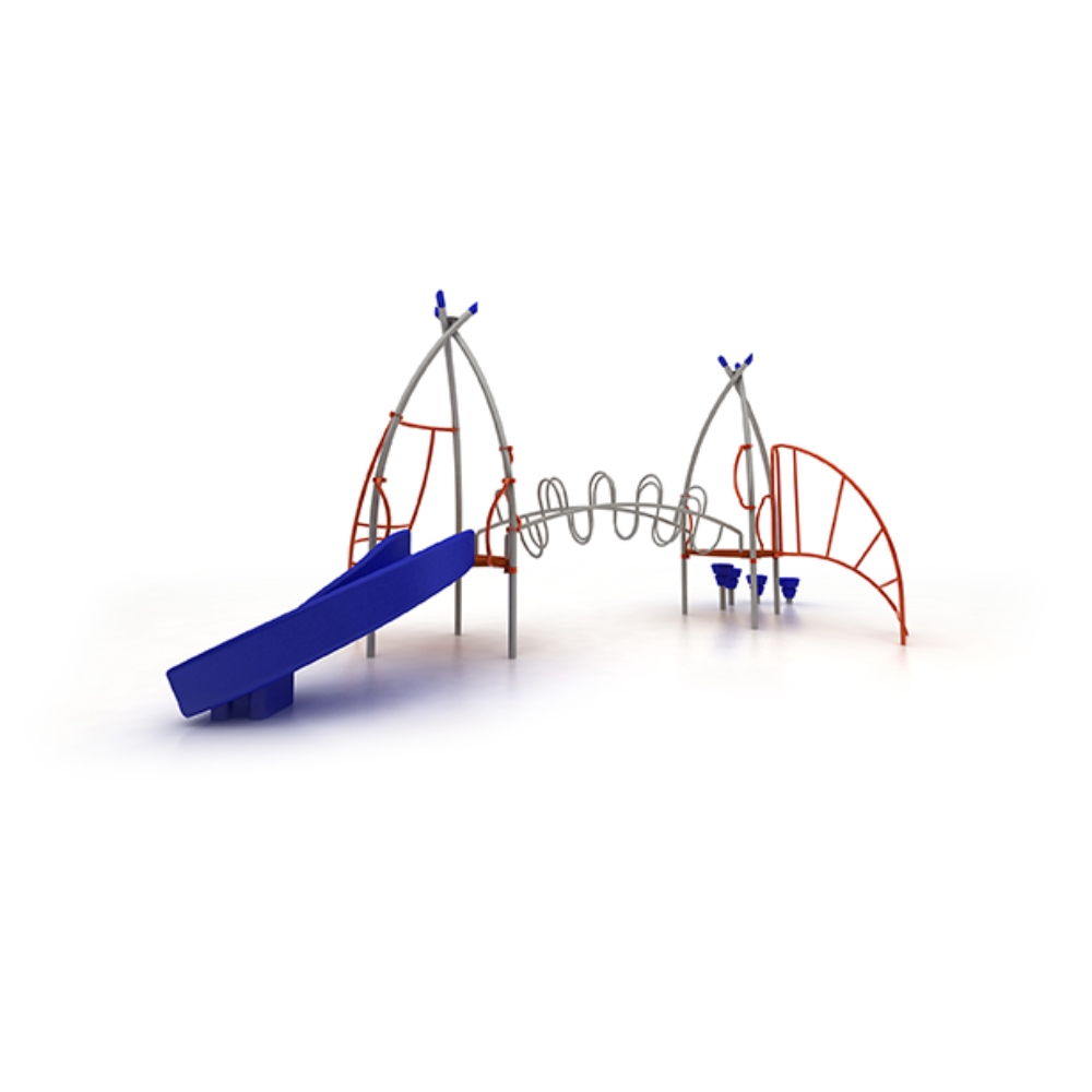 Juego modular dinámico 100% galvanizado con pintura electroestática en polvo sin plomo, plásticos de polietileno rotomoldeado, resistente a las inclemencias del ambiente, no absorbe el agua y no se pudre.
