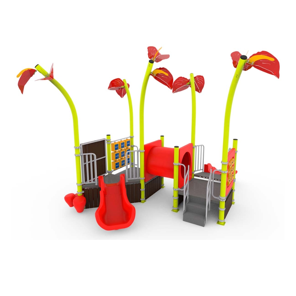 Mangrullo diseñado para la primera infancia, donde los niños más pequeños puedan sentarse, colgarse, trepar, correr, esconderse, creando más juegos de los que podríamos llegar a imaginar. Temática inspirada en la flor del Ceibo.