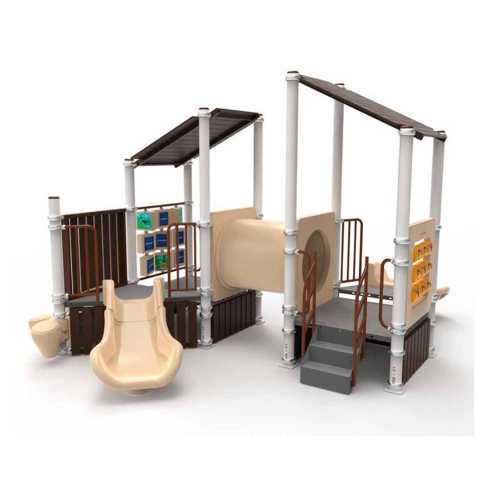 Mangrullo diseñado para la primera infancia, donde los niños mas pequeños puedan sentarse, colgarse, trepar, correr, esconderse, y crear más juegos de los que podríamos llegar a imaginar. La temática del mangrullo está inspirada en un Refugio del Bosque, sus techos y barandas están construidos con tablas de plástico reciclado. En el mismo se encuentran paneles Ta Te Ti, de memoria y tambores, túnel de gateo y toboganes para poder deslizarse.