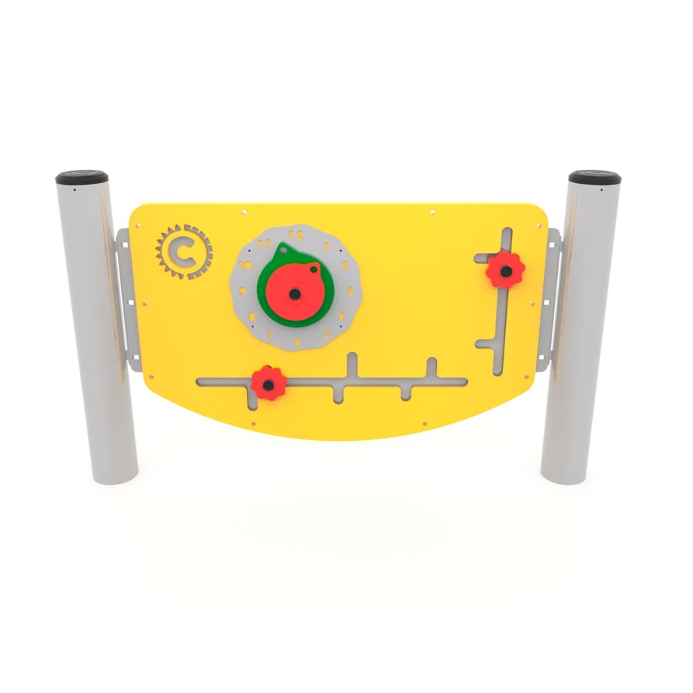 Panel interactivo sensorial, fabricado con estructura de metal y placas de Plástico APM