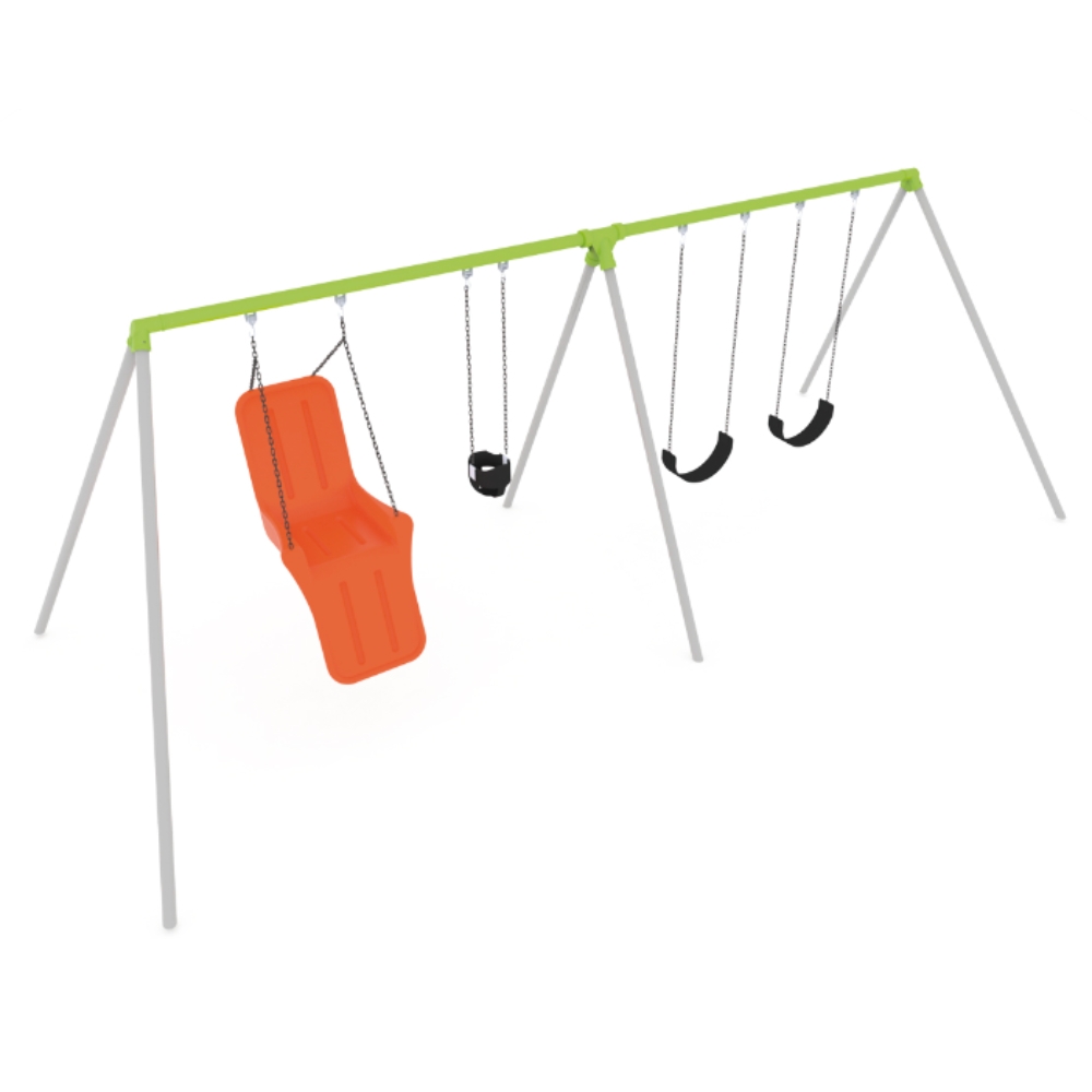 Pórtico múltiple integrador donde los niños y padres encuentran distintas opciones para hamacarse,