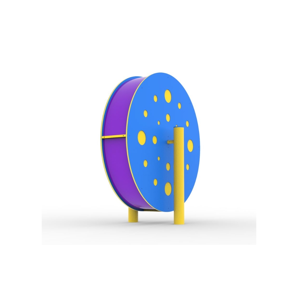 Juego musical inclusivo que ayuda a mejorar los sentidos tales como el oído, tacto y vista. Este producto solo presenta 1 cilindro, pero de mayor escala. El cual se pueden rotar, generando sonido gracias a que contiene en su interior esferas de acero.